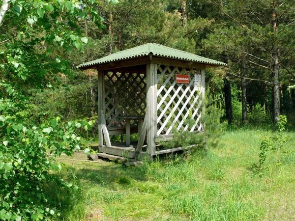 Небольшая деревянная беседка с мангалом, скамьи, стол. Вместимость до 6 человек.
